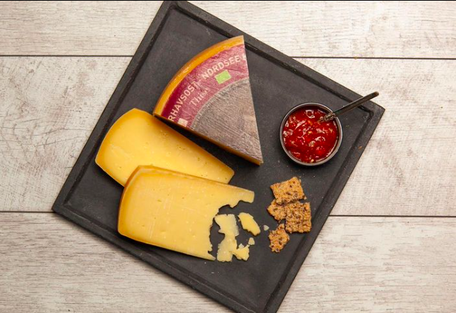 Mejeriprodukter møder frugt og grønt på en klimavenlig tallerken.